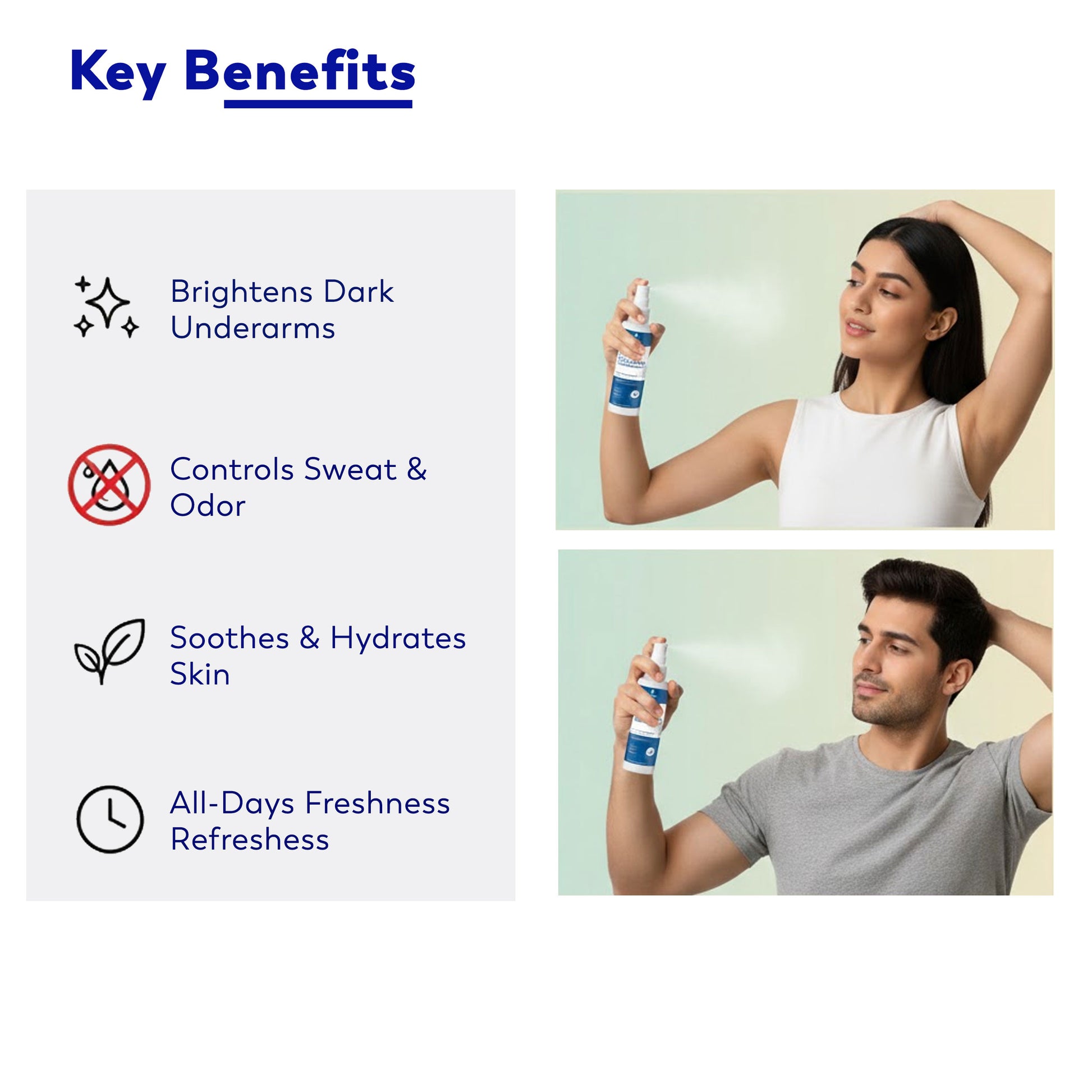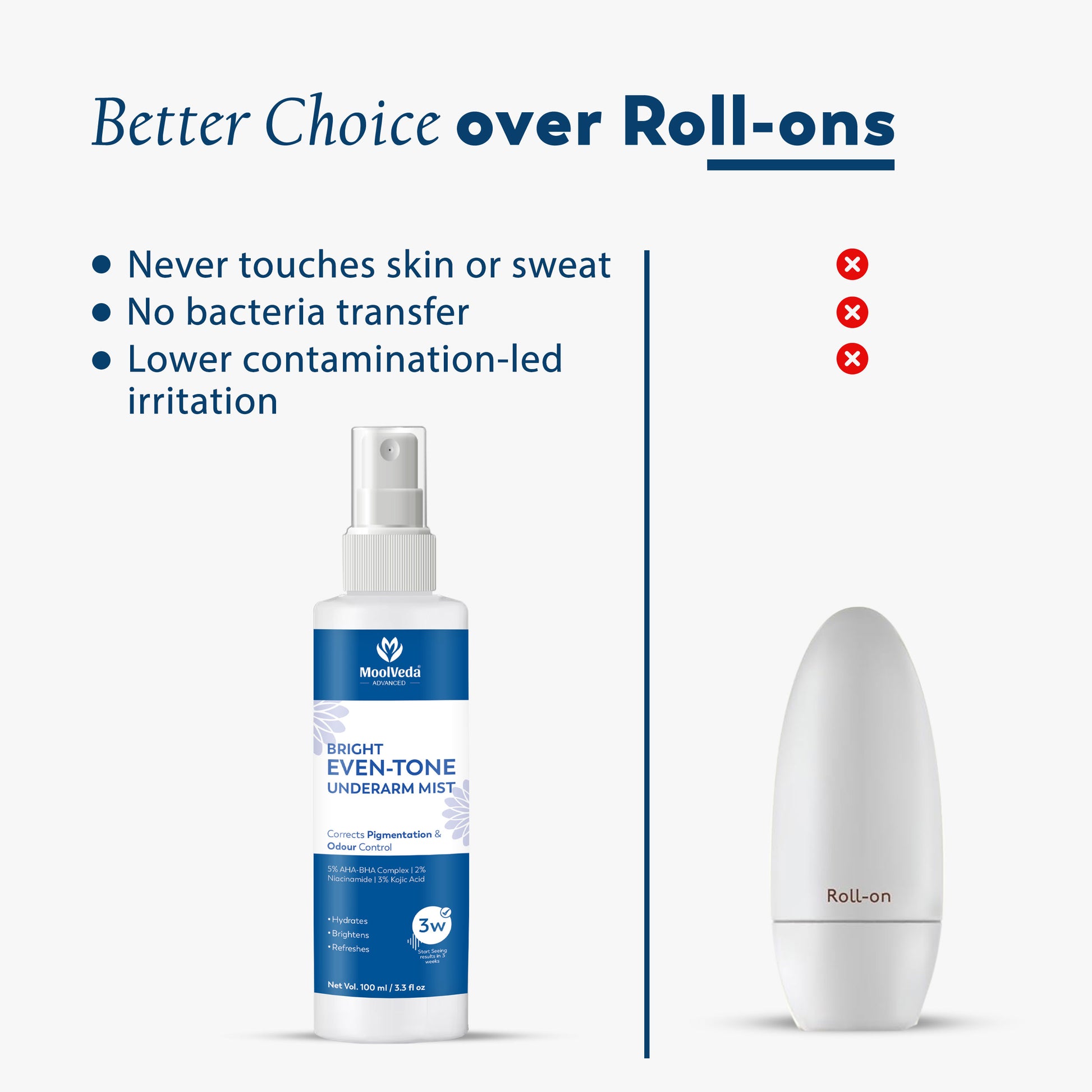 Moolveda Bright Underarm Mist is a refreshing daily spray designed to control odour, reduce sweat-causing bacteria and visibly brighten dark underarms. Powered by AHA, BHA, Niacinamide, Kojic Acid and Licorice, it gently exfoliates dead skin cells, fades pigmentation and helps even out skin tone without irritations