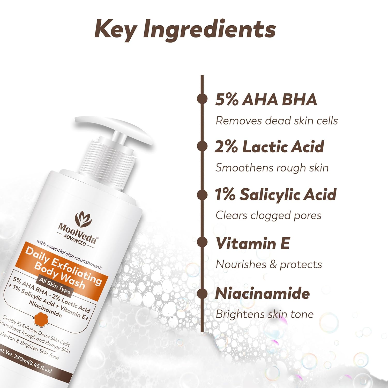 Moolveda Daily Exfoliating Body Wash Shower Gel gently cleanses, exfoliates, and nourishes the skin, leaving it soft, smooth, and refreshed with every wash.