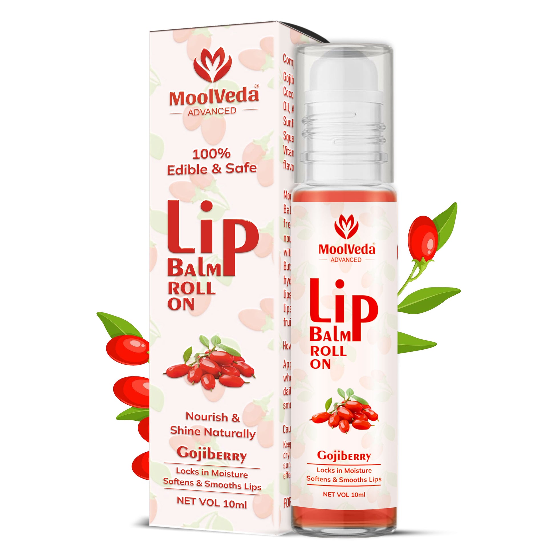 Moolveda Lip Balm Roll on with Gojiberry & 100% edible ingredients & no chemicals, 10ml