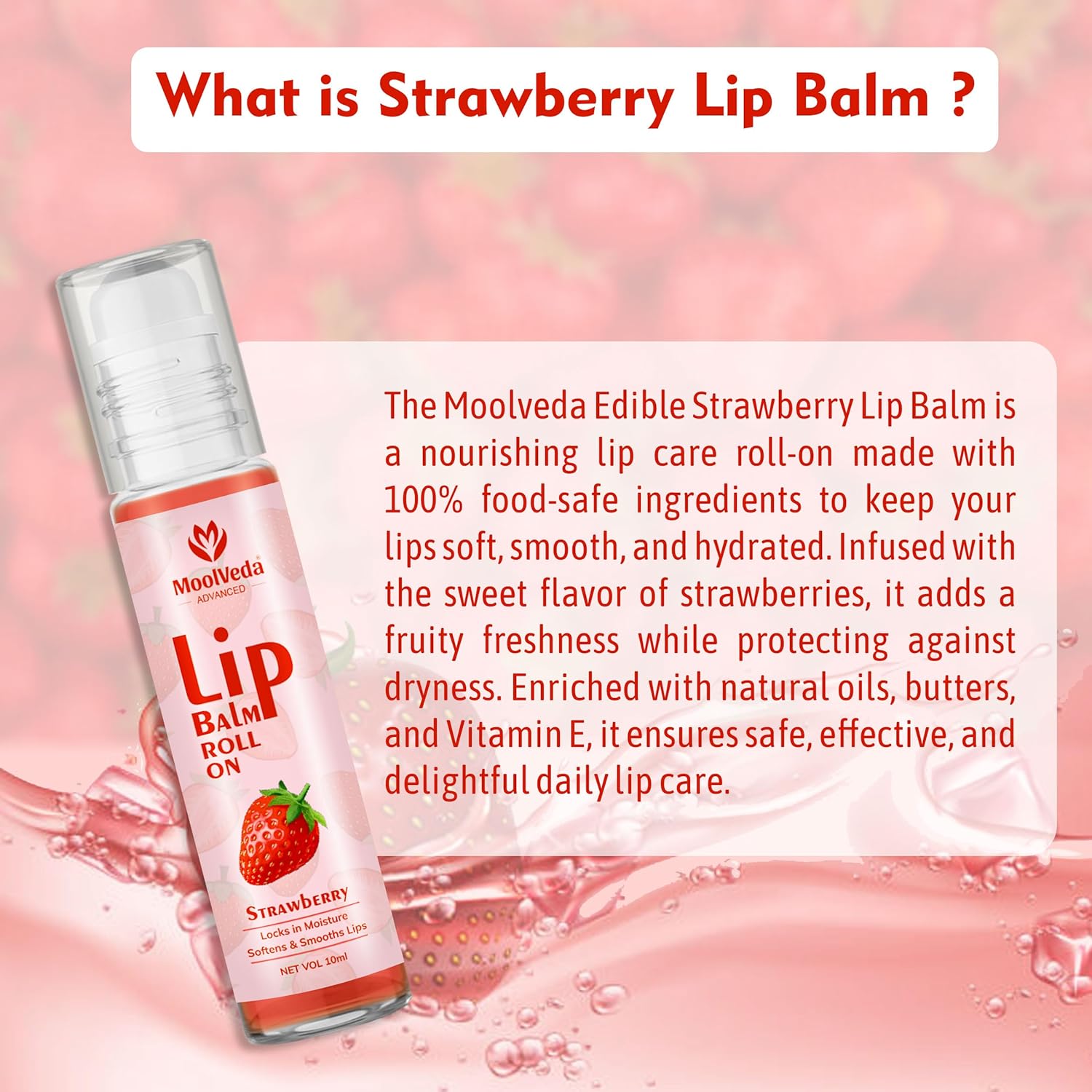 Moolveda Lip Balm Roll on with Strawberry & 100% edible ingredients & no chemicals, 10ml