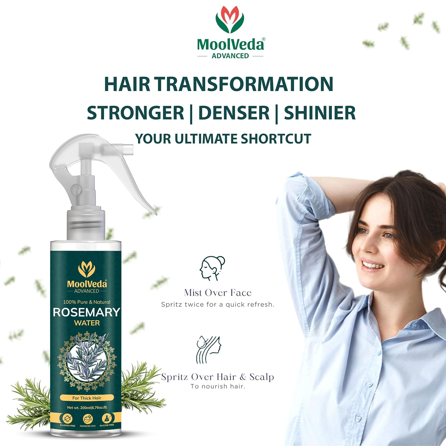 Clean Formula: Moolveda Rosemary Water is silicone-free, ensuring scalp safety and a lightweight, non-greasy application.